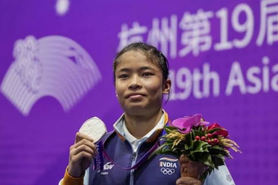 பெண்களுக்கான வூஷு போட்டியில் வெள்ளிப் பதக்கத்தை வென்றார் நவ்ரெம் ரோஷிபினா தேவி.