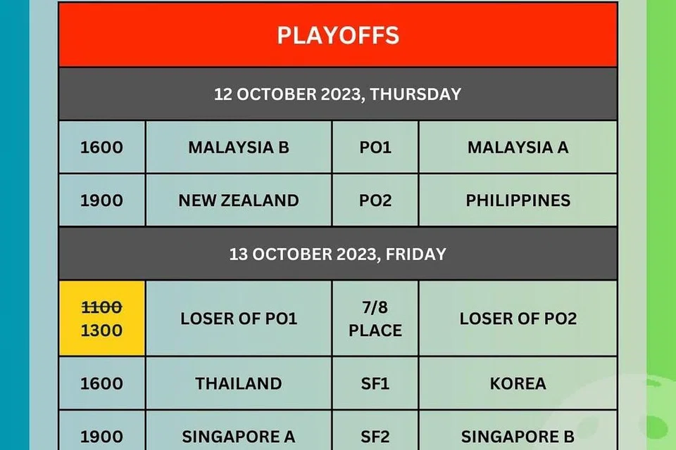 அக்டோபர் 9 முதல் 14 வரை ‘அவர் தெம்பனிஸ் ஹப்’ வளாகத்தில் நடைபெற்றுவரும் போட்டியில் கொரியா, நியூசிலாந்து, மலேசியாவில் இரண்டு அணிகள், தாய்லாந்து, பிலிப்பீன்ஸ், சிங்கப்பூரின் இரண்டு அணிகளோடு போட்டியிடுகின்றன.