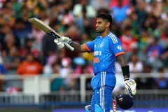 பங்ளாதேஷ் சார்பில் ரிஷாத் மற்றும் தன்சிம் தலா 2 விக்கெட்டுகளை வீழ்த்தினர். ஷகிப், 1 விக்கெட் வீழ்த்தினார்.