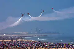 வானில் போர் விமானங்கள் நிகழ்த்திய வர்ணஜாலத்தை லட்சக்கணக்கான மக்கள் வியப்புடன் கண்டுகளித்தனர். இந்த சாகச நிகழ்ச்சியை முன்னிட்டு, 6 ஆயிரத்து 500 காவல்துறையினரும் 1,500 ஊர்க்காவல் படையினரும் பாதுகாப்புப் பணியில் ஈடுபடுத்தப்பட்டனர்.