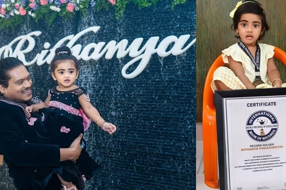 இவரது மகள் ரிதன்யாவுக்கு இரண்டு வயதாகிறது. அதற்குள் இந்தக் குழந்தை இரண்டு உலகச் சாதனைகளைப் புரிந்துள்ளது.