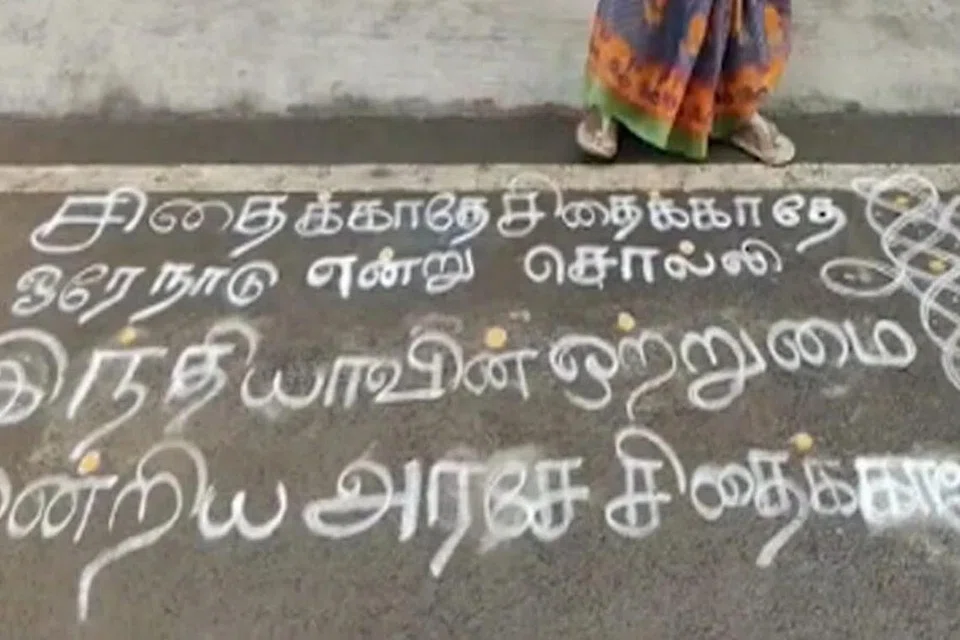 பெண்கள் கோலமிட்ட காணொளியைப் பகிர்ந்து, பாரதிதாசன் வரிகளை மேற்கோள் காட்டிப் பேசிய தமிழக முதல்வர் மு.க.ஸ்டாலின், இந்தி திணிப்புக்கு எதிராக குரல் கொடுத்துள்ளார்.