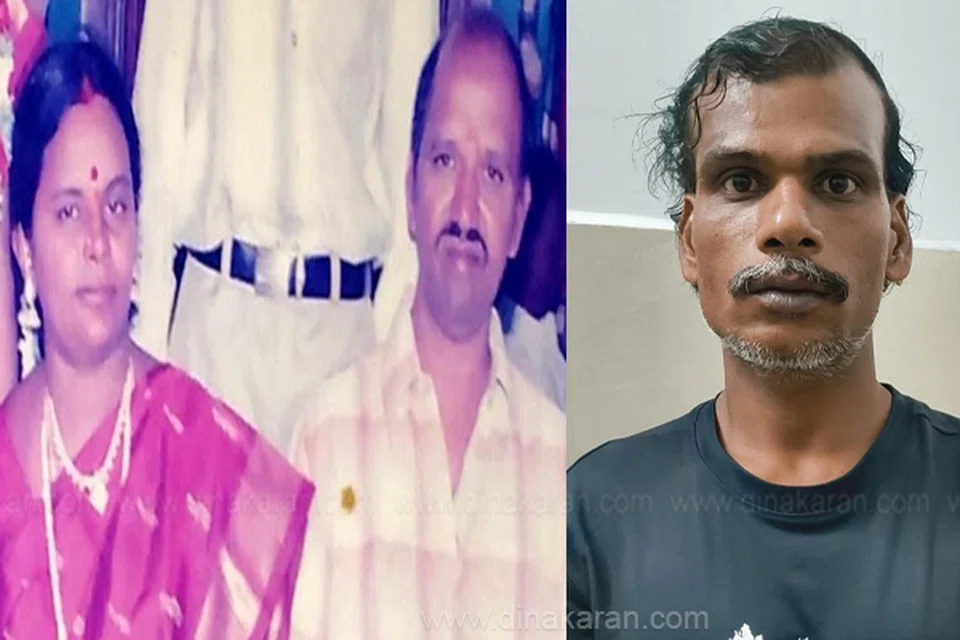 பாஸ்கரன் (70), வித்யா (65) ஆகிய இருவரும் வீட்டில் தனியாக இருப்பதை ஒரு வாரமாக நோட்டமிட்ட சந்தோஷ், சுத்தியலால் அடித்து இருவரையும் கொலை செய்துள்ளான்.