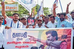 சென்னை: விஜய்யின் தமிழக வெற்றிக் கழகத்தின் (தவெக) கொடி அறிமுக விழாவில் விஜய்யும் கட்சியின் பொதுச் செயலாளர் புஸ்ஸி ஆனந்தும் கண்கலங்குவதைக் காட்டும் காட்சி ஊடகங்களில் வலம் வருகிறது.