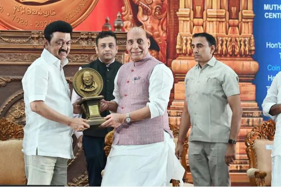 கலைஞர் நூற்றாண்டு நினைவு நாணயம் ஞாயிற்றுக்கிழமை (ஆகஸ்ட் 18) வெளியிடப்பட்டது. தமது சென்னை பயணத்தின் ஒரு பகுதியாக, கலைஞரின் நினைவிடத்தைப் பார்க்க வேண்டும் என விரும்பிய அமைச்சர் ராஜ்நாத் சிங், அங்கு நேரில் சென்று மரியாதை செலுத்தினார்.