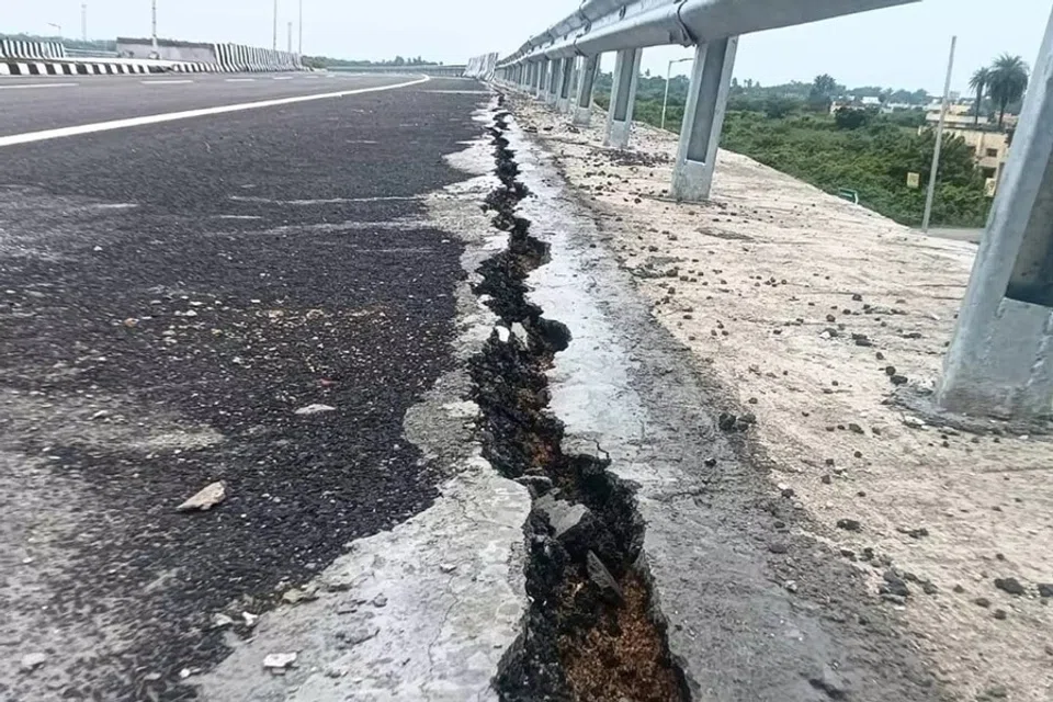 ஏறக்குறைய இரண்டு கிலோ மீட்டர் தூரத்திற்கு சாலையோரங்களில் விரிசல்கள் காணப்படுகின்றன.