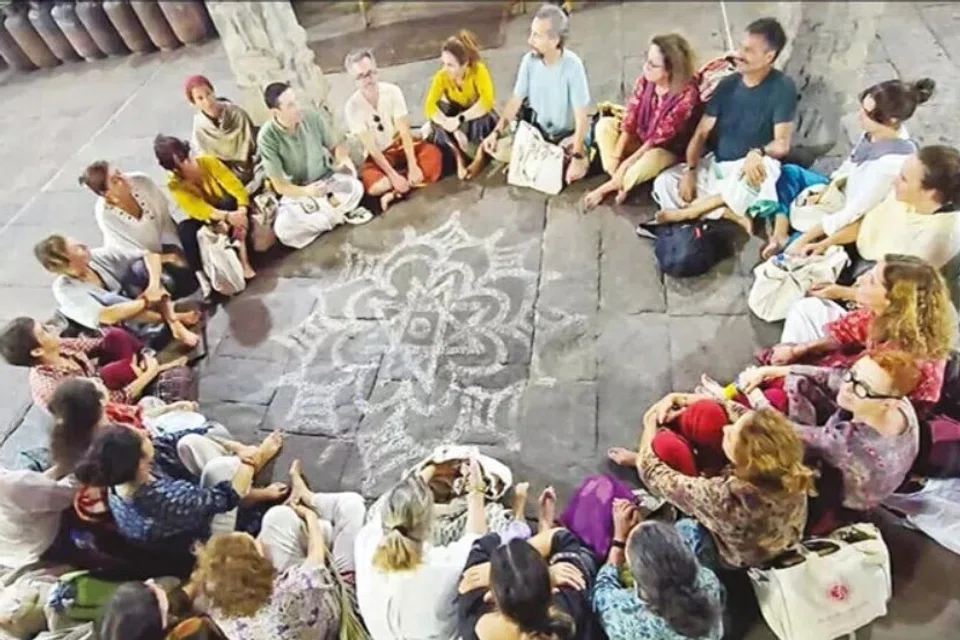 நவகோபுரங்களை தரிசனம் செய்த அவர்கள், மகிழ மரம் அருகே வட்ட வடிவில் அமர்ந்து அனைவரும் கூட்டுப் பிரார்த்தனை செய்தனர்.