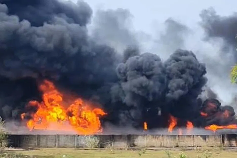 தீ மேல்நோக்கி எரிந்ததால் விண்ணை முட்டும் அளவுக்கு கரும்புகை எழுந்து அந்தப் பகுதி முழுவதும் சூழ்ந்தது.