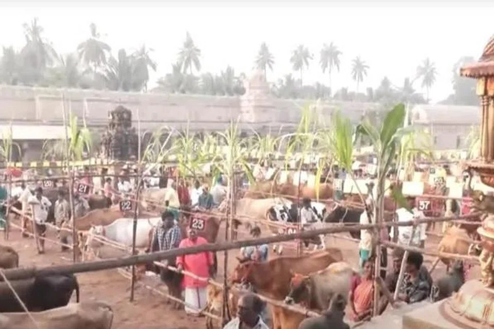 தஞ்சாவூர்: தஞ்சாவூர் பெரியகோயிலில் வெள்ளிக்கிழமை (ஜனவரி 16) மாட்டுப் பொங்கல் மிகச் சிறப்பாக நடைபெற்றது.