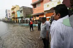 அதன்பின்னர் அவர் இறங்கி பாதிக்கப்பட்ட பகுதிகளை ஆய்வு செய்து மக்களிடம் பேசிவிட்டுச் சென்றதாகத் தகவல்கள் தெரிவிக்கின்றன.