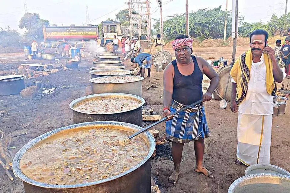 அதன்மூலம் கிடைத்த 1,000 கிலோ கறி, 4,000 கிலோ அரிசியைக் கொண்டு விருந்து சமைத்து, வந்திருந்தோருக்குப் பரிமாறப்பட்டது.