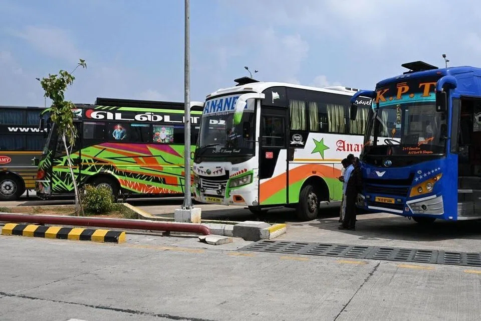 அதனைத் தொடர்ந்து தமிழ்நாடு, கேரளா, கர்நாடகா, ஆந்திரா, தெலுங்கானா, புதுச்சேரி மாநிலங்களுக்கு இடையிலான ஆம்னி பேருந்து சேவை கடந்த இருநாள்களாக நிறுத்தி வைக்கப்பட்டுள்ளது.