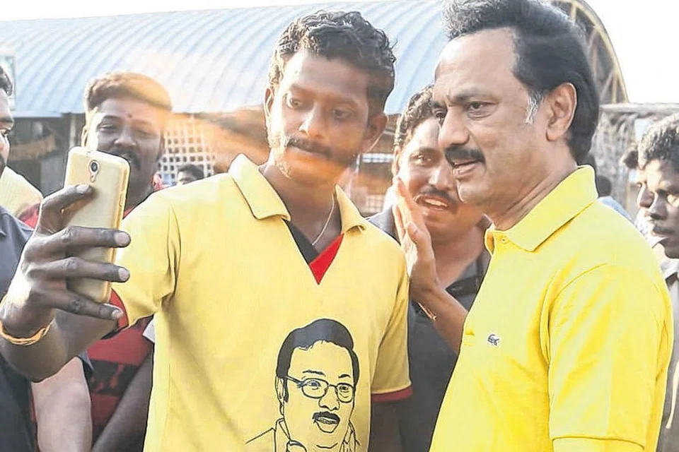 திமுக தலைவர் மு.க.ஸ்டாலின் (இடது), தம்முடைய சகோதரர் மு.க.அழகிரியின் உருவப்படம் பொறித்த டி-சட்டை அணிந்த இளையர் ஒருவருடன் செல்ஃபி எடுத்துக்கொண்டது சமூக ஊடகங்களில் வேகமாகப் பகிரப்பட்டு வருகிறது. நாடாளுமன்றத் தேர்தல், சட்டமன்ற இடைத்தேர்தல் பிரசாரத்தில் தீவிரம் காட்டி வருகிறார் ஸ்டாலின். அந்த வகையில், மதுரை நாடாளுமன்றத் தொகுதியில் மார்க்சிஸ்ட் கம்யூனிஸ்ட் வேட்பாளரான பிரபல எழுத்தாளர் சு.வெங்கடேசனுடன் நடைப்பயிற்சி செய்தபடி இவர் பிரசாரத்தில் ஈடுபட்டார். அப்போது, வழியில் சென்ற பலரின் செல்ஃபி ஆசையையும் தீர்த்து வைத்தார். அவர்களில், இளையர் ஒருவர் அழகிரி படத்துடன் கூடிய டி-சட்டை அணிந்திருந்ததை ஸ்டாலின் கவனித்தாரா என்பது தெரியவில்லை. சில ஆண்டுகளுக்கு முன் திமுகவில் இருந்து நீக்கப்பட்ட அழகிரி இன்னமும் கட்சியில் சேர்த்துக்கொள்ளப்படவில்லை. ஆயினும், தேர்தலில் திமுகவுக்கு ஆதரவாக விரைவில் அவர் குரல் கொடுக்கவுள்ளார் என்று மதுரை திமுகவினர் பேசிக்கொள்கின்றனர். படம்: இந்திய ஊடகம்