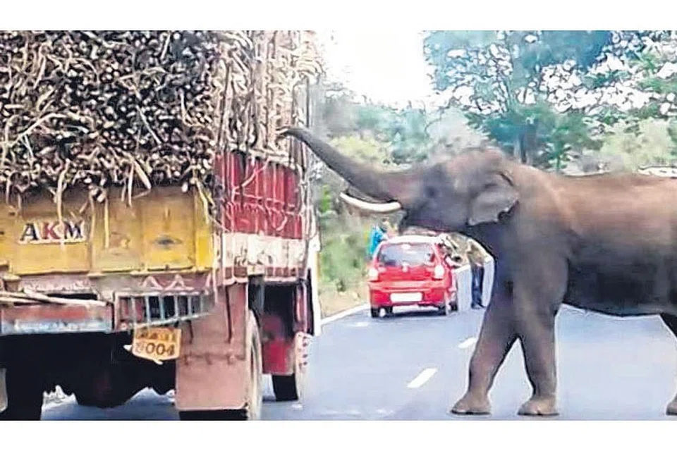 ஈரோடு அருகே தளவாடியில் இருந்து பண்ணாரி சர்க்கரை ஆலைக்கு கரும்பு ஏற்றிச் சென்ற ஒரு லாரி வழியில் மைசூர்-ஹாசனூர் சாலையில் சாத்தே அருகே டீசல் இன்றி நின்றுவிட்டது. அதைக் கண்ட யானைகள் ஒன்றன் பின் ஒன்றாக வந்து கரும்புகளைத் திருடிச் சென்றன. இதனால் சுமார் ஒரு மணி நேரம் போக்குவரத்து நிலைக்குத்தியது. அதிகாரிகள் வந்து துப்பாக்கியால் மேலே சுட்டு யானையை விலகிப்போக வைத்தனர். படம்: தமிழக ஊடகம்