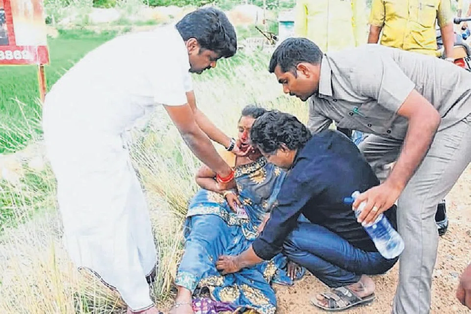 சாலை விபத்தில் சிக்கியவர்களுக்கு உதவும் சுகாதாரத்துறை அமைச்சர் விஜயபாஸ்கரும் அவரது உதவியாளர்களும் படம்: தமிழக ஊடகம் -
