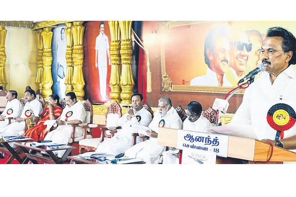 திமுக பொதுக்குழுக் கூட்டம் சென்னை ராயப்பேட்டை ஒய்எம்சிஏ திடலில் நேற்றுக் காலை கட்சித் தலைவர் மு.க.ஸ்டாலின் தலைமையில் நடந்தது. மேடையில் வைக்கப்பட்டிருந்த அண்ணா, கருணாநிதி படங்களுக்கு ஸ்டாலின் மலர்தூவி மரியாதை செலுத்தினார். பொருளாளர் துரைமுருகன், டி.ஆர்.பாலு, ஆர்.எஸ்.பாரதி, கனிமொழி உள்ளிட்டோர் பங்கேற்றனர்.