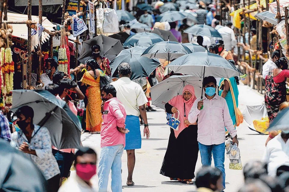 கடந்த நான்கு மாதங்களுக்கும் மேலாக மூடப்பட்டிருந்த சென்னை பூக்கடை பசார், பத்திரியன் தெருவில் உள்ள பூக்கடைகள் நேற்று முன்தினம் மீண்டும் திறக்கப்பட்டன. சமூக இடைவெளியைக் கடைப்பிடிக்க கடைக்காரர்கள் பல்வேறு நடவடிக்கைகளை எடுத்துள்ளனர். கடைகளுக்கு முன்னால் கம்புகளால் தடுப்பு வேலிகள் அமைக்கப்பட்டுள்ளன. வாடிக்கையாளர்களின் உடல் வெப்பநிலை பரிசோதிக்கப்படுகிறது. கிருமிநாசினியைக் கையில் தெளித்தும் முகக்கவசம் இல்லாமல் வருவோருக்கு இலவசமாக முகக்கவசமும் கடைக்காரர்களே வழங்கி வருகின்றனர். எல்லாவற்றுக்கும் மேலாக, கடைகளுக்கு வருவோர் சமூக இடைவெளியைக் கடைப்பிடிக்கும் பொருட்டு கடைக்காரர்களே குடைகளை வழங்கி வருகின்றனர். இதற்காக ஆயிரம் குடைகளை வாங்கியதுடன், காவலாளிகள் பத்துப் பேரை பணிக்கு அமர்த்தி, தெருவின் இருபுறமும் நின்று குடைகளை வழங்கி தெருவுக்குள் அனுமதித்துவிட்டு, பூக்களை வாங்கியபின் வெளியே வரும்போது, குடைகளை வாங்கிக்கொண்டு அனுப்புகின்றனர். படம்: ஏஎஃப்பி