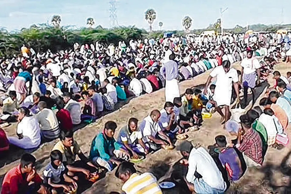 அதன் பின்னர் பக்தர்களுக்கு இந்த உணவு பரிமாறப்படுகிறது.பின்னர் மீதமிருக்கும் உணவை அங்கு குழிவெட்டி புதைத்து விடு கின்றனர்.