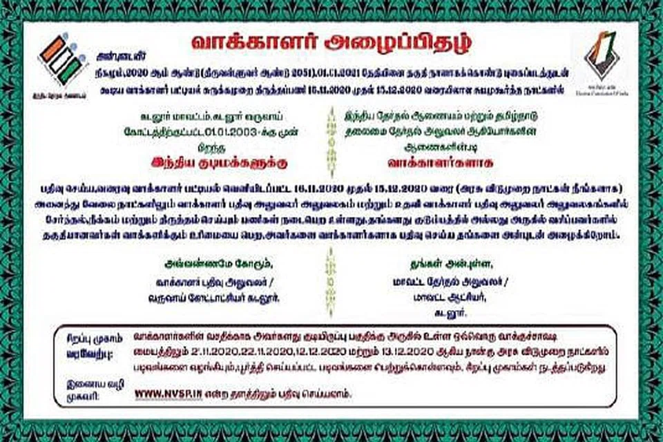 எந்தவொரு விஷயத்தையும் புது மாதிரியாக யோசித்துசெயல்படுத்தும்போது, அது மக்களை எளிதில் சென்றடைகிறது என்று கூறும் கடலூர் கோட்டாட்சியர் ஜெகதீசன், அவரது கட்டுப்பாட்டுக்கு உட்பட்ட பகுதிகளில் வாக்காளர் பட்டியலைத் திருத்தும் முகாம் பற்றிய விவரங்களை திருமண அழைப்பிதழ் பாணியில் அச்சிட்டு வழங்கி வருவதாகத் தெரிவித்தார்.