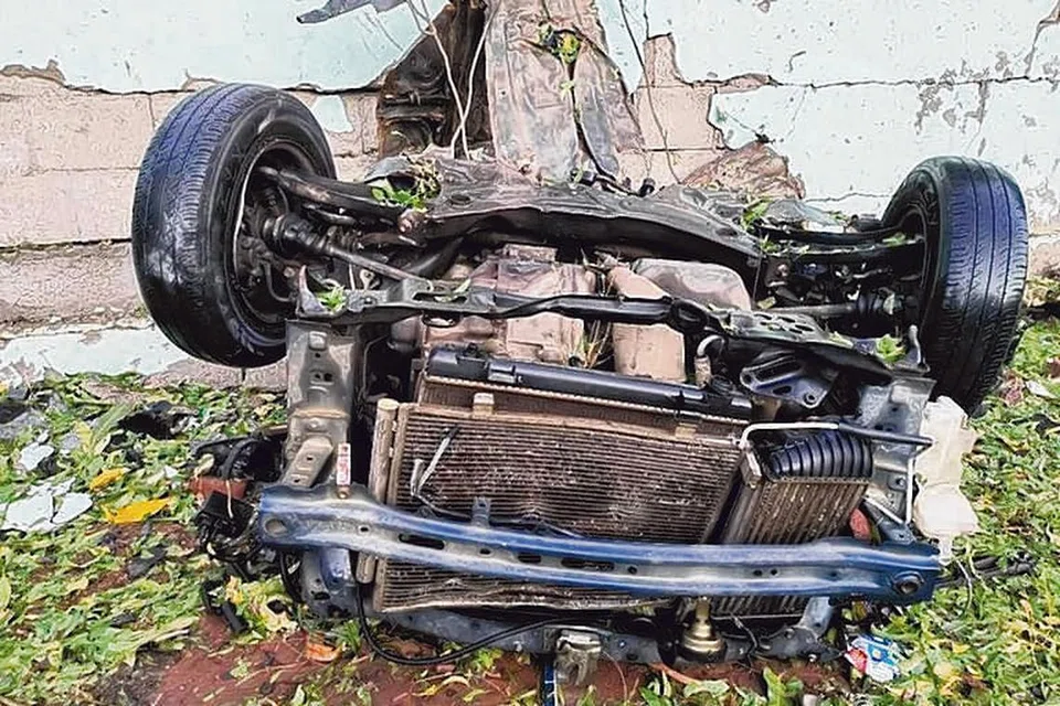 காரில் இருந்த வெடிபொருள்கள் வெடித்ததில் கார் சேதம் அடைந்ததுடன் சுற்று வட்டாரத்தில் உள்ள 30க்கும் மேற்பட்ட வீடுகளும் விரிசல் ஏற்பட்டு சேதம் அடைந்தன. படம்: ஊடகம்