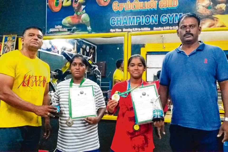 கடும் பயிற்சியின் பலனாக திருச்சியில் நடைபெற்ற மாநில அளவிலான பளு தூக்கும் போட்டி யில் தாயும் மகளும் பதக்கங்களை வென்றுள்ளனர்.
