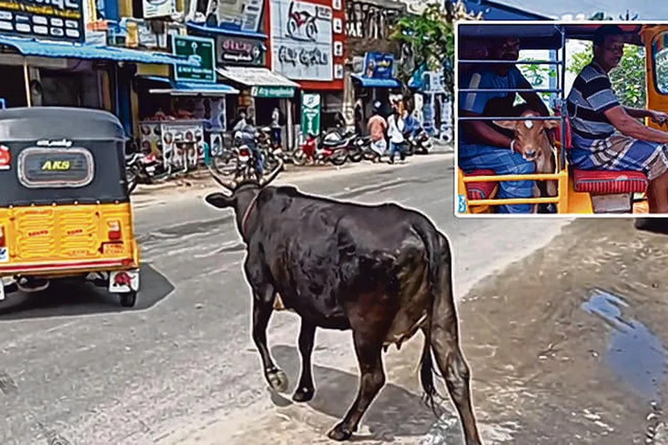 ஆட்டோவில் செல்லும் தன் கன்றை 2 கி.மீ. தூரம் துரத்திய பசு