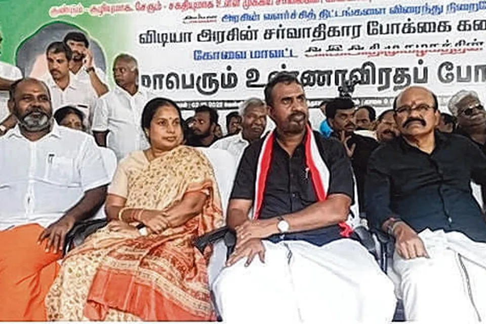 மின்கட்டண உயர்வு, பால் விலை உயர்வைக் கண்டித்தும் எடப்பாடி பழனிசாமி அறிவுறுத்தலில் அதிமுகவினர் தமிழகம் முழுவதும் ஆர்ப்பாட்டம் நடத்தினர். கோவை யில் நேற்று முன்தினம் உண்ணா விரதப் போராட்டம் நடைபெற்றது. அதில் பாஜகவினரும் கலந்து கொண்டனர்.