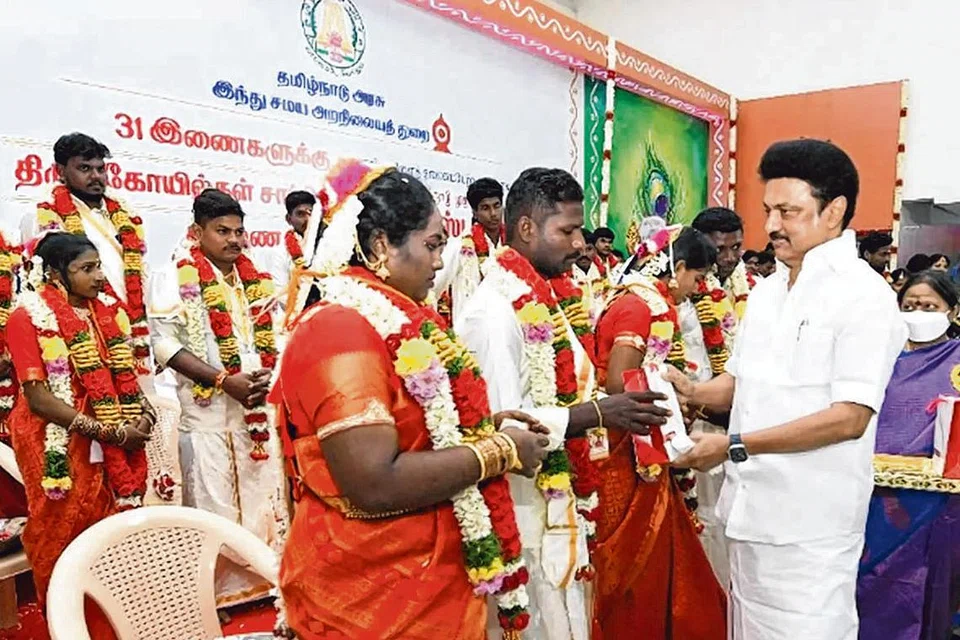 2022-2023ஆம் ஆண்டிற்கான இந்து சமய அறநிலையத் துறையின் மானியக் கோரிக்கையில், "தமிழகத்தில் 20 மண்டலங்களில் ஆண்டுதோறும் 500 இணை களுக்கு திருக்கோயில்களில் திருமணங்கள் நடத்தப்படும். இதற்கான செலவினத்தைத் திருக்கோயில்களே ஏற்கும் என அறிவிக்கப்பட்டது. அதன்படி, சென்னை இணை ஆணையர் மண்டலத்திற்குட்பட்ட திருக்கோயில்கள் சார்பில் 31 இணைகளுக்கு நேற்று தமிழ்நாடு முதலமைச்சர் மு.க.ஸ்டாலின் தலைமையேற்று திருமணத்தை நடத்தி வைத்து சீர்வரிசைப் பொருள்களை வழங்கி, வாழ்த்தினார்.