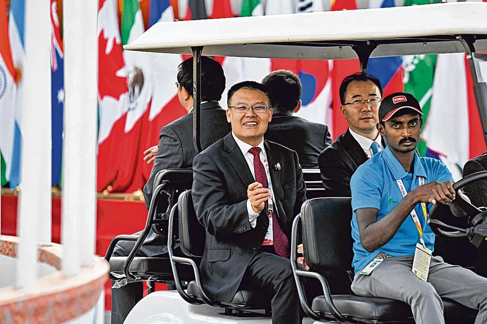 'ஜி20' அமைப்புக்கு இந்தியா தலைமை ஏற்றுள்ளது. இதையடுத்து அந்த அமைப்பின் சார்பாக ஓராண்டு காலத்தில் இருநூறு மாநாடு கள், ஒருங்கிணைப்பு நிகழ்ச்சி கள் ஆகியவற்றை நாட்டின் பல்வேறு பகுதிகளிலும் நடத்த மத்திய அரசு திட்டமிட்டுள்ளது. இந்நிலையில் ஜி20 நாடுகளின் நிதி அமைச்சர்கள் பங்கேற்ற கூட்டம் பெங்களூரில் நடைபெற்றது. இதில் பங்கேற்ற சீனாவின் துணை நிதி அமைச்சர் வாங் டோங்வீய் (இடது), பேட்டரி காரில் மாநாட்டு அரங்குக்கு சென்றார். படம்: ராய்ட்டர்ஸ்