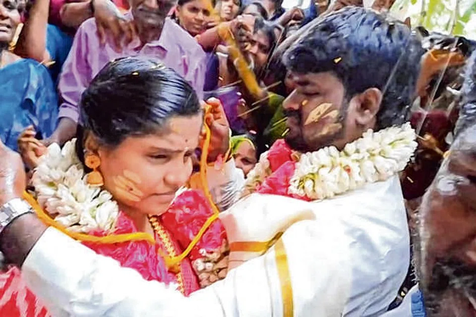 மணமகளும் அவரது குடும்பத்தாரும் இதற்கு சம்மதிக்க, மணமக்கள் இருவரும் உடனடியாக திருமண கோலத்துக்கு மாறினர். பின்னர் உயிரிழந்த ராஜேந்திரன் முன்பு நின்று சொர்ணமால்யா கழுத்தில் கண்ணீர் மல்க தாலி கட்டினார் பிரவீன். அப்போது மணமகளும் துக்க நிகழ்வுக்காக கூடியிருந்தவர்களும் கண்ணீர் சிந்தினர்.