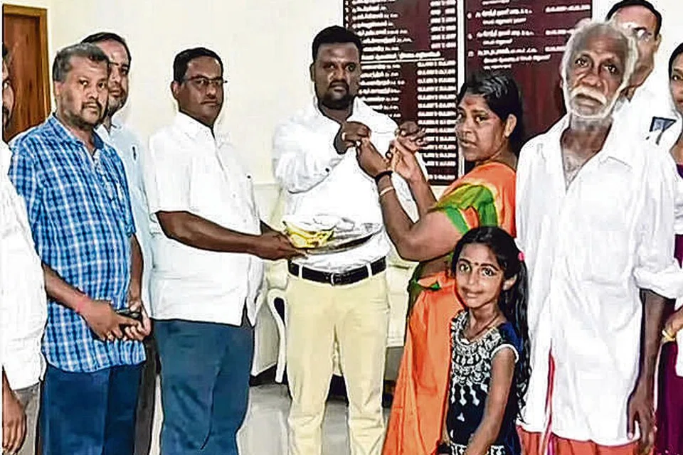 எனவே, பழநி கோயில் அறங்காவலர் குழுத்தலைவர் சந்திரமோகன், ரூ.1.09 லட்சம் மதிப்புள்ள தங்கச்சங்கிலியை அப்பெண்ணிற்கு வழங்கினார். நேற்று முன்தினம் சங்கீதா தனது குடும்பத்தினருடன் கோயில் அலுவலகத்திற்கு வந்து, கண்ணீர்மல்க தங்கச்சங்கிலியை பெற்றுச் சென்றார்.