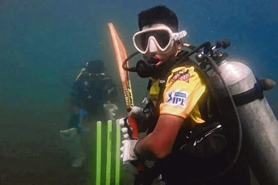ஐபிஎல் கிரிக்கெட் போட்டியில் சென்னை அணி வெற்றி பெற்றதை அடுத்து ரசிகர்கள் பல்வேறு வகையில் வாழ்த்தும் பாராட்டும் தெரிவித்து வருகின்றனர். அந்த வகையில் சென்னை அருகே உள்ள நீலாங்கரை கடற்பகுதியில் 12 அடி ஆழத்தில் ஆழ்கடல் நீச்சல் பயிற்சியாளர் அரவிந்தும் அவரது நீச்சல் குழு உறுப்பினர்களும் கிரிக்கெட் விளையாடினர். அது தொடர்பான காணொளி சமூக ஊடகங்களில் பரவலாகப் பகிரப்பட்டு வருகிறது. படம்: ஊடகம்