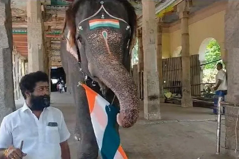 இந்தியாவின் 77வது சுதந்திர தினம் செவ்வாய்க்கிழமை நாடெங்கும் வெகு சிறப்பாகக் கொண்டாடப்பட்டு வரும் நிலையில், கும்பகோணத்தில் உள்ள ஆதி கும்பேஸ்வரர் கோயில் யானையும் நாட்டுப் பற்றுடன் சுதந்திர தினத்தைக் கொண்டாடியுள்ளது.
