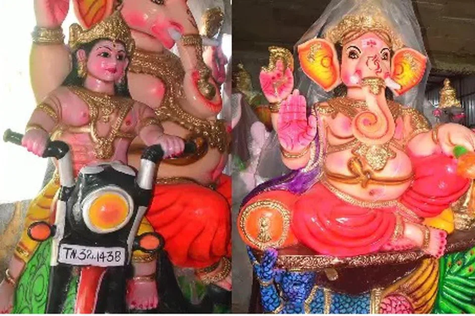 அங்கு சனீஸ்வரருடன் அமர்ந்திருக்கும் பிள்ளையார், விவசாய விநாயகர், கடல்கன்னி உருவத்தில் அருள்பாலிக்கும் பிள்ளையார், சிங்க வாகனங்களில் எழுந்தருளிய விநாயகர், முருகன் புல்லட் ஓட்ட பின்சீட்டில் பயணம் செய்யும் பிள்ளையார், ராஜகணபதி, கடல் நாகத்தில் வீற்றிருக்கும் விநாயகர், மயில் மீது அமர்ந்த பிள்ளையார், சிவன் சிலையை ஏந்தி நிற்கும் பாகுபலி விநாயகர் என்று பல்வேறு வடிவங்களில் சிலைகள் வடிக்கப்பட்டு வருகின்றன.