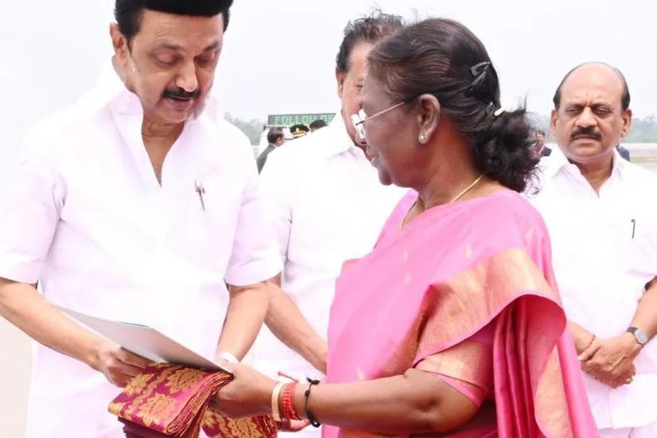 சென்னை, இந்திய கடல்சார் பல்கலைக்கழகத்தில் நடைபெற்ற பட்டமளிப்பு விழாவில் கலந்துகொண்டு, டெல்லி புறப்பட்டுச் செல்லும் இந்தியக் குடியரசுத் தலைவர் திரவுபதி முர்முவை, தமிழக முதல்வர் மு.க. ஸ்டாலின் சென்னை விமான நிலையத்தில் இன்று (அக்.27) சந்தித்தார்.