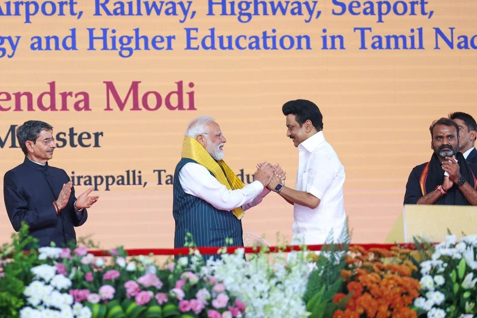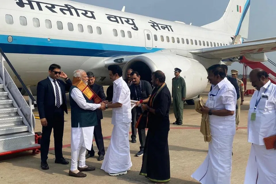 முன்னதாக திருச்சி வந்தடைந்த பிரதமர் மோடியை முதல்வர் மு.க.ஸ்டாலினும் ஆளுநர் ஆர்.என்.ரவியும் விமான நிலையத்தில் வரவேற்றனர்.