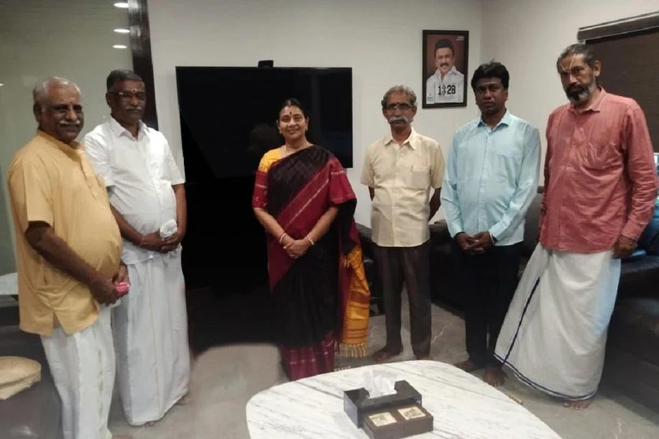 அவற்றைப் பெற்றுக்கொண்ட துர்கா ஸ்டாலின், விரைவில் தரிசனம் செய்ய வருவதாக தெரிவித்ததாக அவர்கள் கூறினர்.