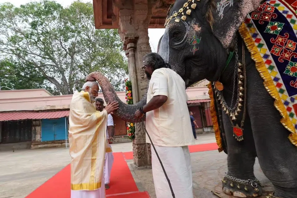 சனிக்கிழமை காலை திருச்சியில் உள்ள திருவரங்கத்தின் அரங்கநாதர் கோயிலுக்குச் சென்ற பிரதமருக்கு அங்கு தங்கக் குடத்தில் பூரண கும்ப மரியாதை அளிக்கப்பட்டது.