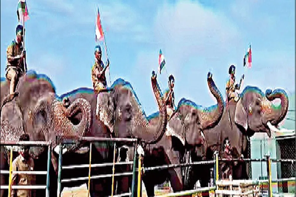 அம்முகுட்டி, சங்கர், பாமா, கிருஷ்ணா உள்ளிட்ட யானைகளின் மீது தேசியக் கொடியுடன் பாகன்கள் அமர்ந்திருந்தனர். வனக் காப்பாளர், வேட்டை தடுப்புக் காவலர்கள் முன்னிலையில், காப்பக இணை இயக்குநர் திவ்யா தேசியக் கொடியை ஏற்றினார்.