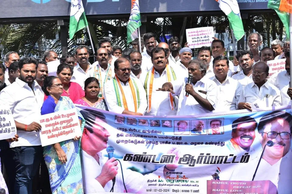சென்னையில் நடைபெற்ற ஆர்ப்பாட்டத்தில் திரளானவர்கள் பங்கேற்றனர். அப்போது பேசிய காங்கிரஸ் மாநிலத் தலைவர் செல்வப்பெருந்தகை, தேர்தல் பத்திரம் விவகாரத்தில் உச்ச நீதிமன்ற உத்தரவின்படி, ஸ்டேட் வங்கி பட்டியலை தேர்தல் ஆணையத்தில் கொடுக்கும் என்று எதிர்பார்த்தோம்.