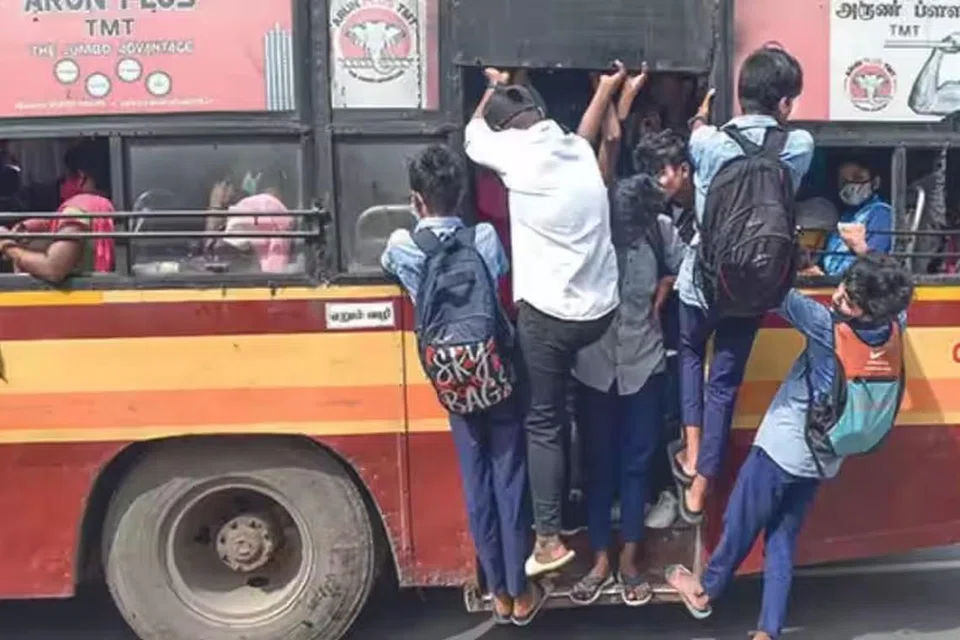 இத்தகைய பயணம் ஆபத்தானது என தொடர்ந்து அரசும் அதிகாரிகளும் அறிவுறுத்தி வரும் நிலையில், மாணவர்கள் தங்கள் வழக்கத்தை மாற்றியபாடில்லை. இந்நிலையில் செவ்வாய்க்கிழமை அன்று சில மாணவர்கள் தனியார் பேருந்தின் படிக்கட்டுகளில் பயணம் செய்துள்ளனர்.