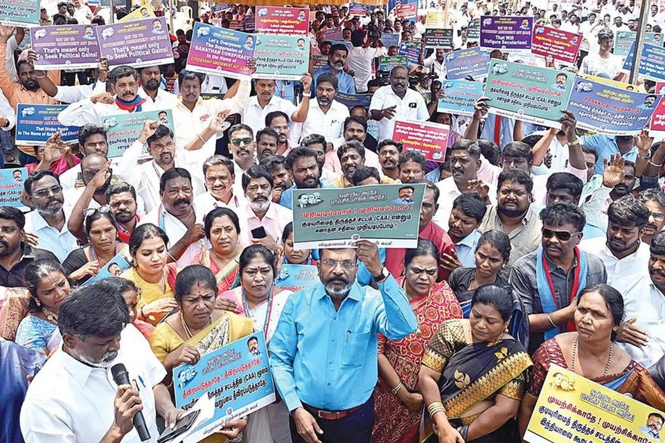 “ஒருவேளை அந்தச் சமயத்தைச் சார்ந்தவர்கள் குடியுரிமை கேட்டு வந்துவிட்டால் அவர்களது வீடு உள்ளிட்ட அனைத்தையும் விட்டுவிட்டு முகாம்களுக்குச் செல்ல வேண்டும். இதை ஏற்க இயலாது,” என்றார் திருமாவளவன்.