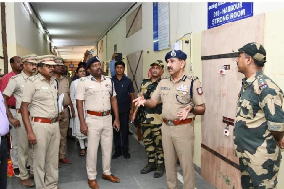 சென்னையில் உள்ள மூன்று நாடாளுமன்ற தொகுதிகளையும் சேர்ந்த வாக்குப்பதிவு இயந்திரங்களைப் பாதுகாப்பான அறையில் வைக்கும் பணி லயோலா கல்லூரியில் நடைபெற்றது. இதனை சென்னை மாநகராட்சி ஆணையரும், தேர்தல் நடத்தும் அலுவலருமான ராதாகிருஷ்ணன் நேரில் பார்வையிட்டு ஆய்வு மேற்கொண்டார். பின்னர் செய்தியாளர்களுக்கு நேர்காணல் அளித்தார். அப்போது, “லயோலா கல்லூரியில் மின்னணு வாக்குப்பதிவு இயந்திரங்கள் வைக்கப்பட்டுள்ள அறையில்156 கண்காணிப்புக் கருவிகள் பொருத்தி, தொடர்ந்து கண்காணிக்க உள்ளோம். வாக்குப்பதிவு இயந்திரங்கள் வைக்கப்பட்டுள்ள அறைக்குள் செல்ல யாருக்கும் அனுமதி இல்லை,” என்றார் அவர்.