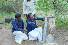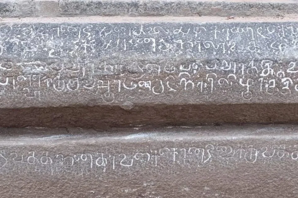 விழுப்புரம்: விழுப்புரம் அருகே உள்ள ஏமப்பூர் கிராமத்தில் வேதபுரீஸ்வரர் கோயிலில் திருப்பணியின்போது ஆதித்த கரிகால சோழனின் கல்வெட்டை அறிஞர் அண்ணா அரசு கலைக் கல்லூரி வரலாற்றுத் துறை பேராசிரியர் ரமேஷ், பட்ட ஆய்வாளர் இமான் உள்ளிட்ட குழுவினர் கண்டறிந்தனர்.