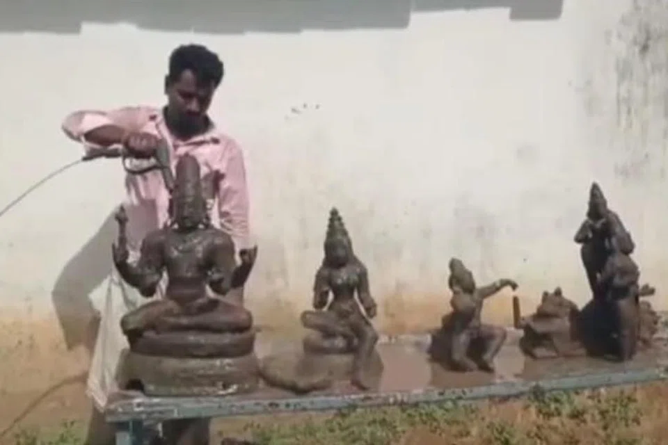 இந்தக் கோயிலின் அருகில் வீடு கட்டுவதற்காக கட்டுமானப் பணியாளர்கள் வெள்ளிக்கிழமை காலையில் குழி தோண்டினர்.