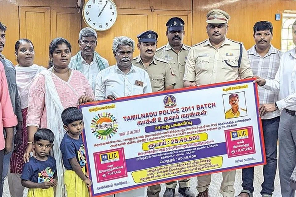 கிருஷ்ணகிரி மாவட்ட காவல் கண்காணிப்பாளர் அலுவலகத்தில் நடந்த நிகழ்ச்சியில், ராஜேந்திரனின் குடும்பத்தினரிடம் காப்பீடு பத்திரம், காசோலையை காவல் ஆய்வாளர் தங்கதுரை வழங்கினார்.