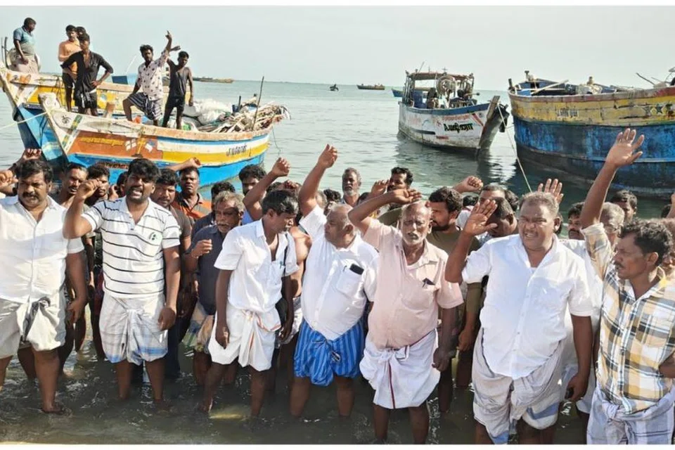 இதனைத் தொடர்ந்து இலங்கைக் கடற்படையினரால் சிறைபிடிக்கப்பட்ட 25 நாட்டுப் படகு மீனவர்களையும், பறிமுதல் செய்யப்பட்ட படகுகளையும் விடுவிக்க வலியுறுத்தியும் திங்கட்கிழமை காலை மீனவர்கள் பாம்பனில் கடலில் இறங்கி ஆர்ப்பாட்டம் நடத்தினர். தொடர்ந்து பாம்பன் பாலத்தில் சாலை மறியல் போராட்டமும் நடத்தினர். இந்த சாலை மறியல் போராட்டத்தால் ராமேசுவரம் - மதுரை தேசிய நெடுஞ்சாலையில் சுமார் ஒரு மணி நேரத்துக்கும் மேலாக போக்குவரத்து பாதிப்புக்குள்ளானது.