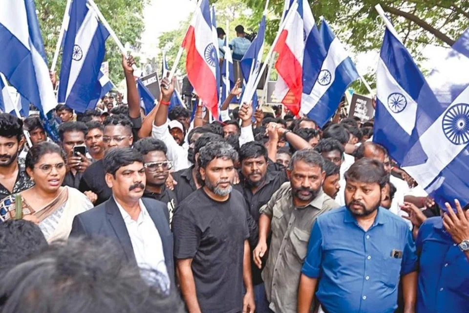 பா.ரஞ்சித்தின் நீலம் பண்பாட்டு மையம் சார்பில் சென்னை எழும்பூரில் சனிக்கிழமை பேரணி நடைபெற்றது. இதில் பங்கேற்றவர்கள் ஆம்ஸ்ட்ராங் கொலை வழக்கில் நேர்மையான முறையில் வழக்கு விசாரிக்கப்பட்டு நீதி வழங்க வேண்டும் என்று பதாகைகள் மூலமாகவும், முழக்கங்களை எழுப்பியும் வலியுறுத்தினர்.