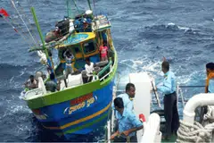 அப்போது கார்த்திகேயன் என்பவரின் விசைப்படகில் ரோந்துக் கப்பல் கடுமையாக மோதியதில், அந்தப் படகு நடுக்கடலில் மூழ்கியது. அதில் அவர் உயிரிழந்தார். மற்றொரு மீனவர் மாயமாகி உள்ளார்.