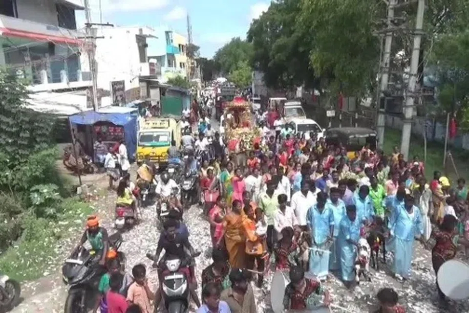 இதனால் தாடிக்கொம்பு கிராமமே சீர்வரிசை வண்டிகளின் அணிவகுப்பாக காட்சியளித்தது.